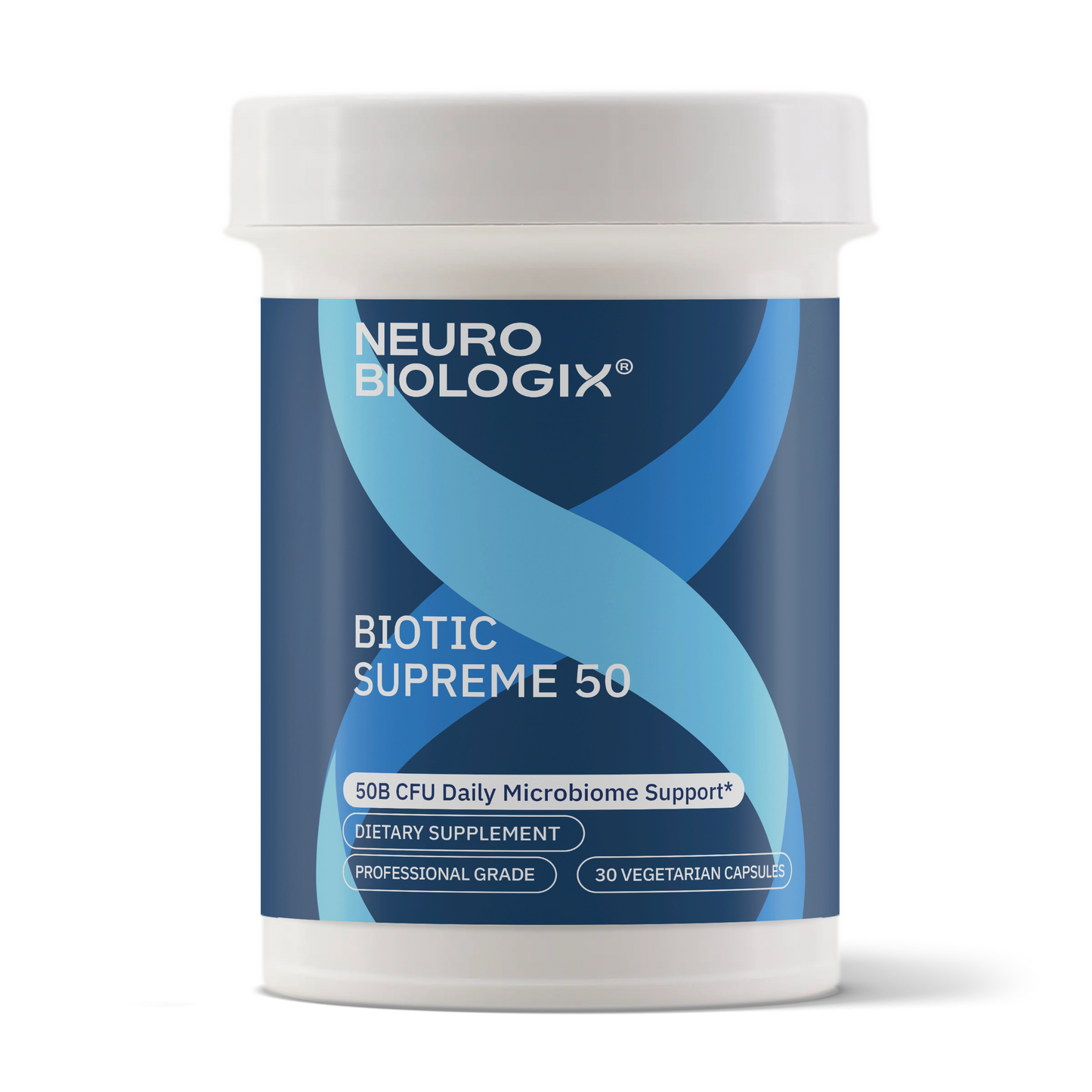 Biotic Supreme 50 is a superior combination of seven probiotics + a prebiotic to rebuild and maintain healthy GI ecology with over 50 billion CFUs per capsule! The prebiotic SunFiber® helps regulate and normalize the digestive system. This next-generation formula provides a more profound entourage effect on GI ecology for total-body benefits.