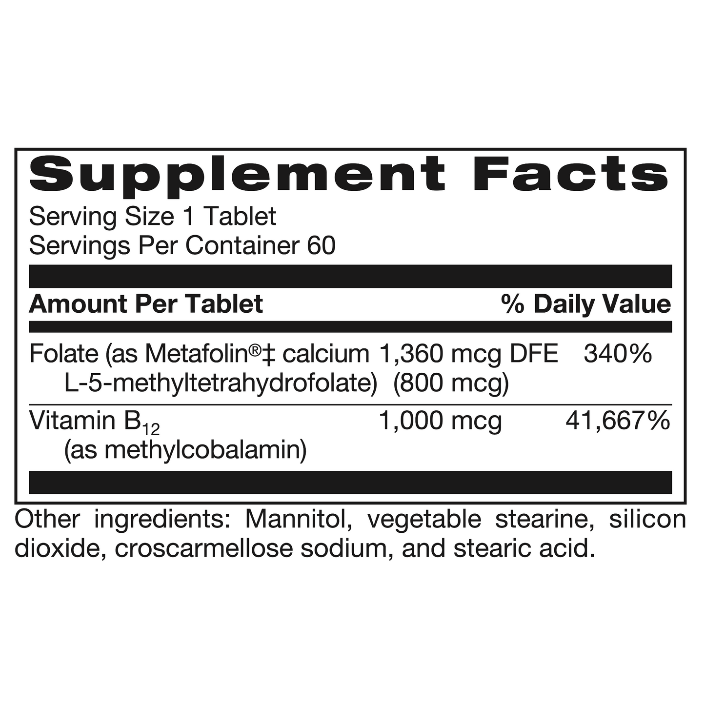 ["Folate (As Metafolin Calcium L-5-Methyltetrahydrofolate)","Vitamin B12 (As Methylcobalamin)"]