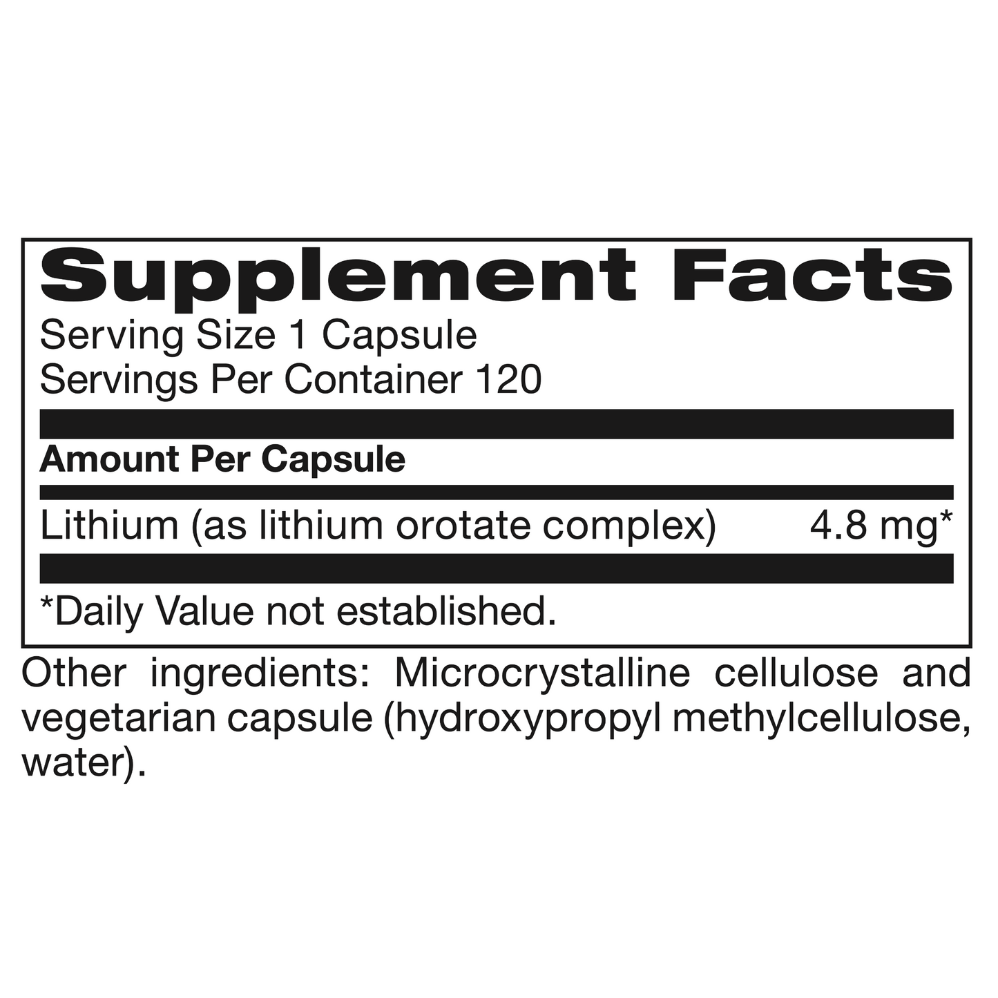 Research has also shown low-dose lithium may support cognitive function in individuals with Alzheimer’s, helping protect brain cells and slow cognitive decline. Combined with orotic acid for enhanced absorption, it may also boost inositol activity, vital for mood and mental performance.