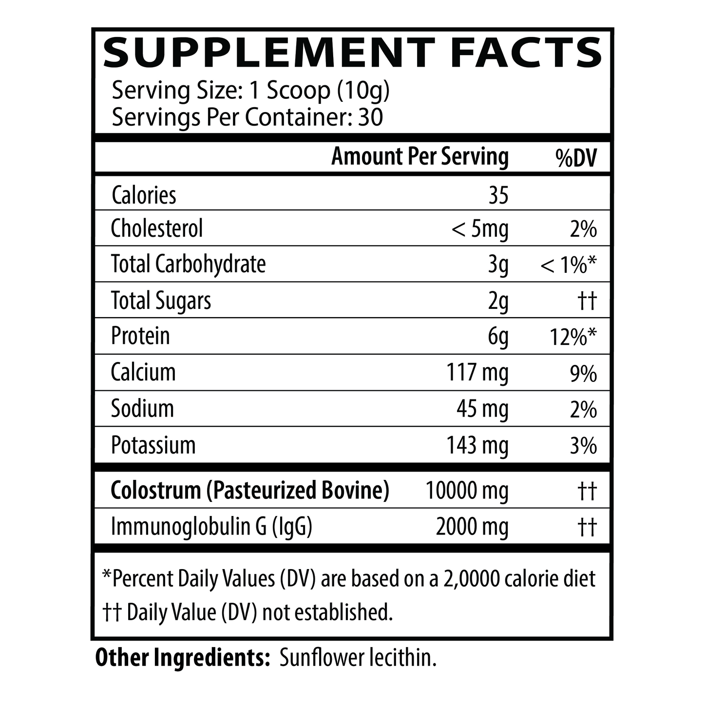 Backed by extensive research, bovine colostrum has been shown to promote immune balance, tissue repair, healthy digestion, and lean muscle maintenance. Because bovine colostrum contains higher levels of immune factors than human colostrum- and is biologically transferable- it offers comprehensive, natural support for daily health and resilience.*