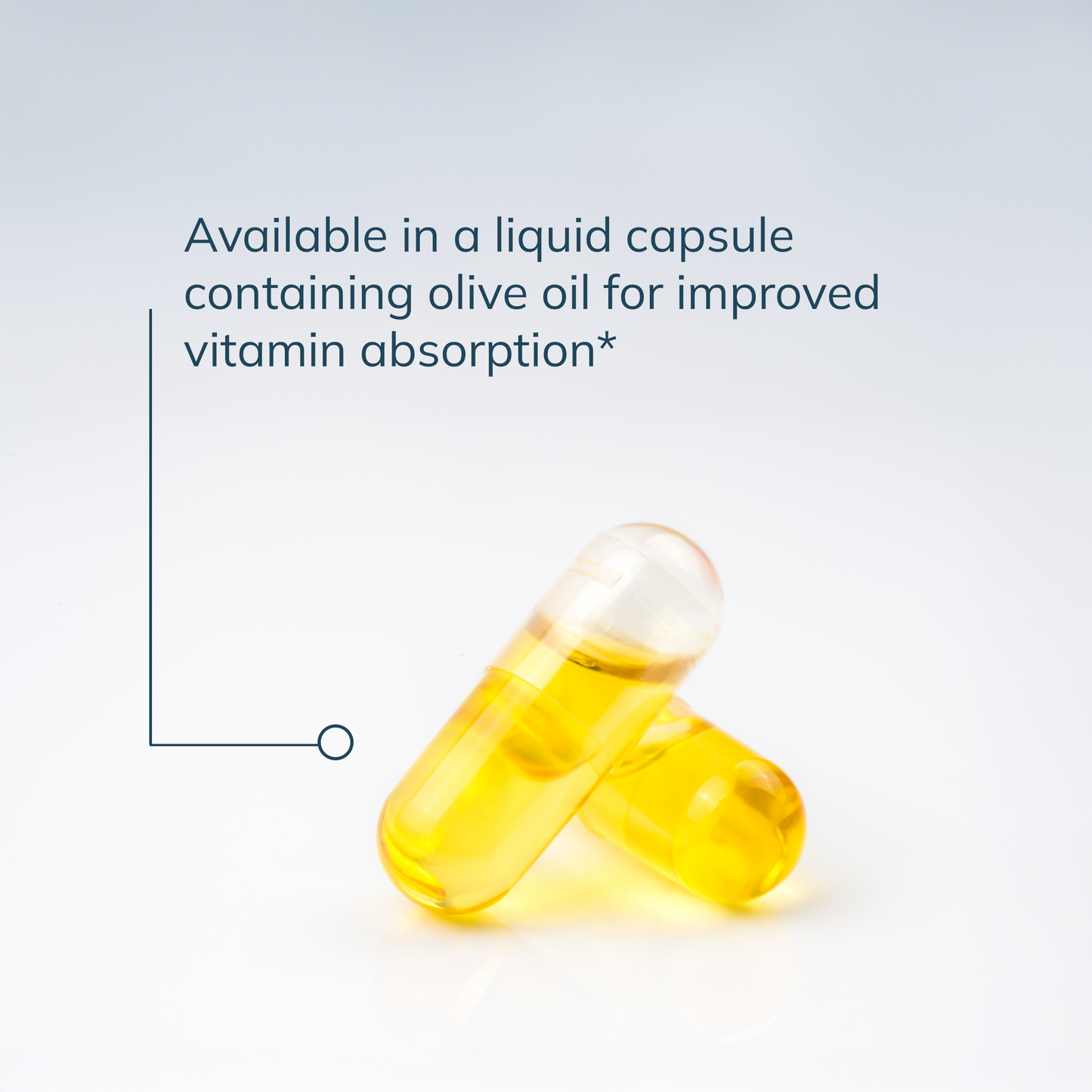 D3 5000 + K1/K2 contains the most bioavailable and bioactive version of vitamin K2 available (K2VITAL® MK7), paired with 5000 IUs of vitamin D3 (cholecalciferol), and available in a liquid capsule with olive oil for improved absorption.* The vitamin D3 in D3 5000 + K1/K2 helps transport calcium from the intestines into the bloodstream as the Vitamin K2 directs the calcium into the bones while also supporting the minimization of calcium buildup in the arteries.*